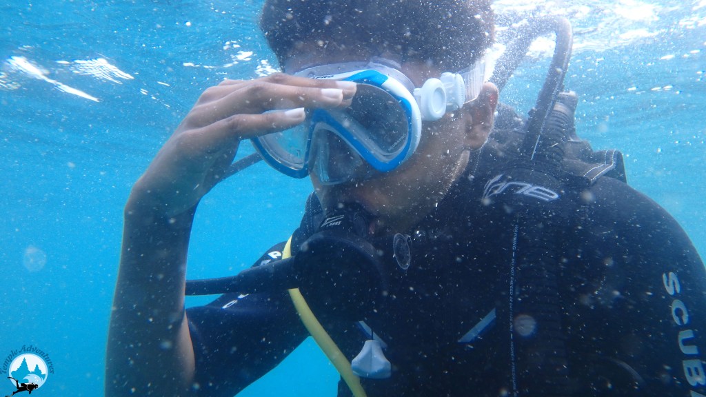 After some research, I shortlisted “Temple Adventures” ( https://www.templeadventures.com/diving/ ) a PADI 5 star IDC Diving experience center as well offers certification and courses. Initially I had planned to do the diving course (in the hindsight, glad I didn’t). But finally decided to at least go for the one day diving experience. It starts early morning with a 2 hour scuba diving course at their center in middle of the town. We were made to wear the full scuba diving gear and take a dip into the huge tanks there to get our training before we actually dive into the ocean.