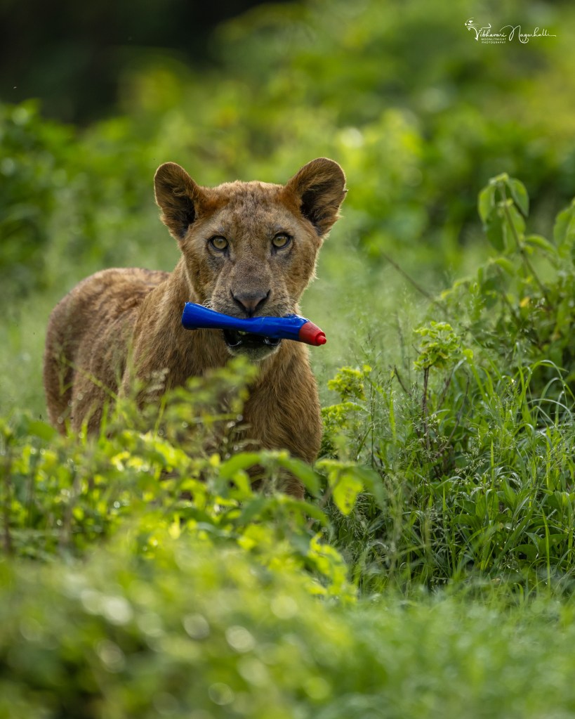 The next day we saw a Gazelle newborn calf chased by the Zebra. Looked like one of its hind legs was broken. When the Zebra chased Gazelle’s calf and almost trampled it, the calf ran towards our car. It stood right below the window of our car. It looked up at us for a few seconds and stood there almost shaking with fear. I can never forget those eyes… they had a scared and vulnerable look. It was disturbing. After a few excruciating moments both for us and the calf, its mother came by and both of them ran into the bushes. Don’t think it would have survived long with a broken leg, but such is nature and its rules in the wild. Poignant but a harsh reality. Seeing it on NatGeo TV and watching it happen in front of your eyes is completely different. It left me wondering for days. One of most unexpected scene was to see a young sub adult lion with an empty toilet cleaner bottle in its mouth. Was baffled as to how did that end up in this pristine Lake Nakuru National park and in that lions mouth!! If the bottle had any cleaning liquid left it could be fatal to the lion. To see that such protected areas too are not safe leaves you truly worried about how the serious the issue of conservation is!