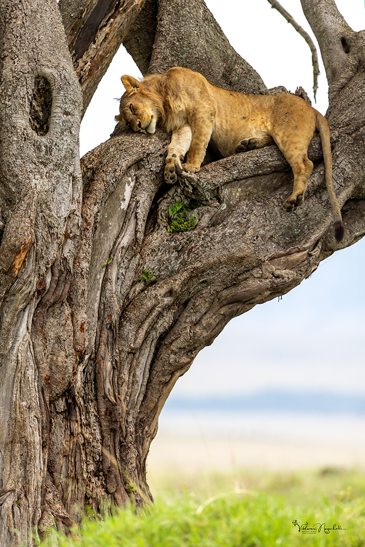 My first leopard sighting in the wild was at Masai Mara. A male leopard named split nose due to a tear in its nose, due to a fight, lazing atop a tree. It was a blazing sunny afternoon with harsh light. We waited for a long time for this leopard to come down the tree. Finally, after a long wait, it came down with a giant leap and right away chased up a Warthog, albeit in vain. Then it passed by my jeep into the grass. The grass is so tall that you can’t even see the leopard unless you are standing in your seat. God bless you in case you are walking in the grass unawares like its prey and you won’t even realize it’s a leopard until it pounces on you. Same with lions, we passed by so many lions sleeping in the grass and we didn’t realize there was a lion until we saw it right beside our vehicle. Such is the advantage the big cats have in the grasslands. One side of Masai Mara borders the Serengeti National park of Tanzania. There is a borderstone indicating the demarcation. Across the border Felt so lucky to catch a glimpse of the rolling grasslands of Serengeti stretching beyond the horizon. I stood there gazing and trying to absorb as much as I could.